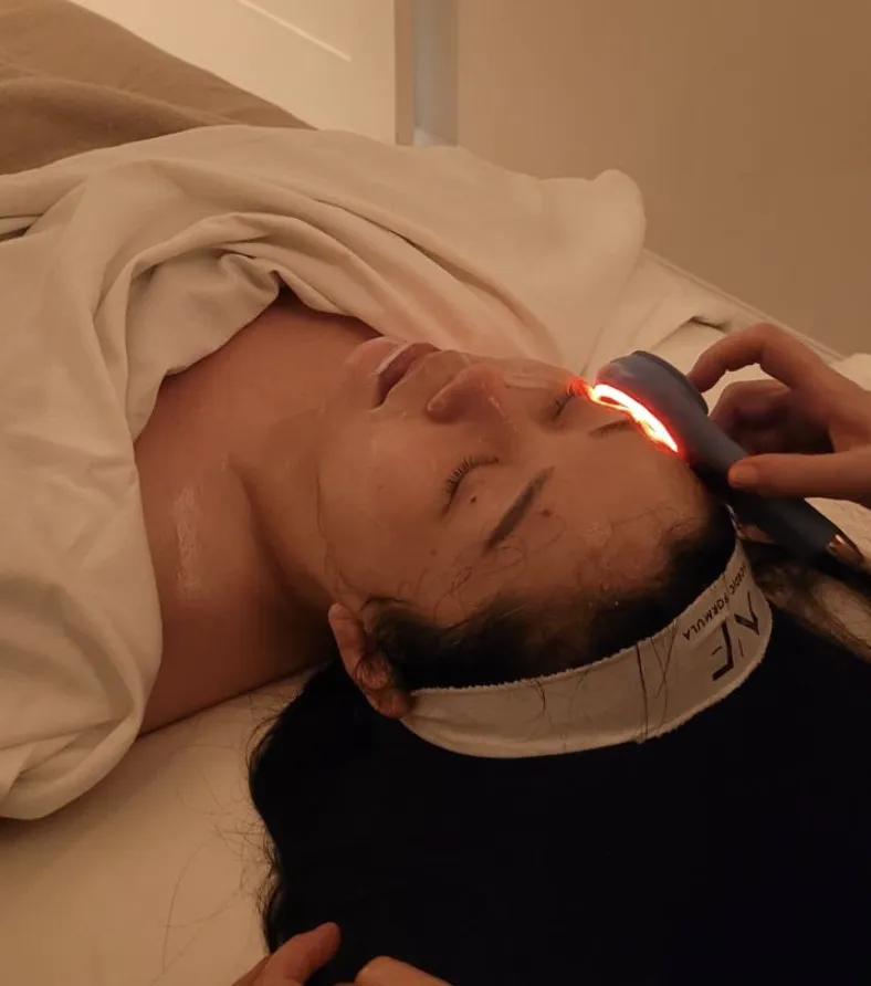 Avslappende velvære: Infrarød massasje og akupressur løsner spenninger, gir dyp avkobling og gjør ansiktskonturene mer definerte.